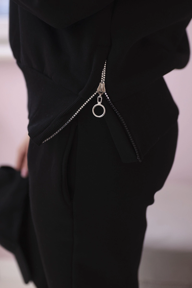 Pristatome jums džemperio ir kelnių rinkinį. Džemperis su gobtuvu ir golfu. Kelnės turi elastingą juosmenį. Rinkinys pagamintas iš izoliuotos medžiagos. Dydis yra universalus ir tinka S, M arba L dydžio moterims.