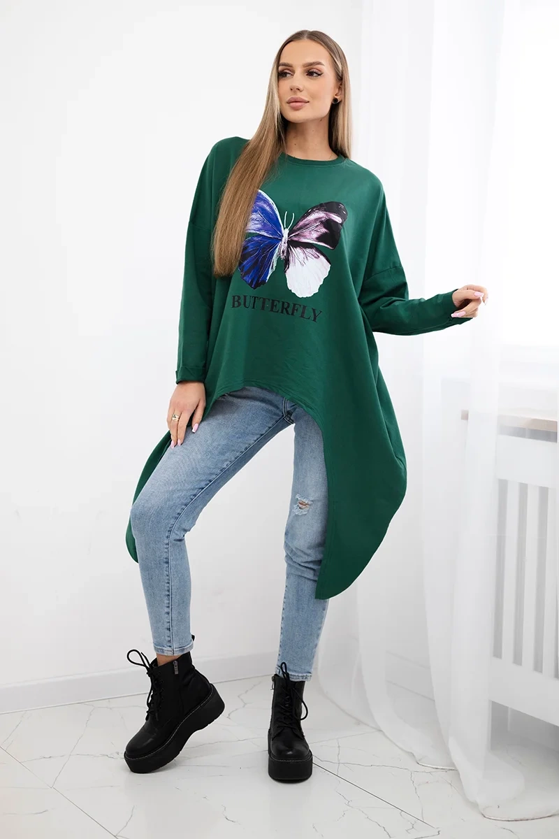 Pristatome jums madingą palaidinę. Drugelio rašto palaidinė. Palaidinė su ilgesniais šonais. Palaidinė pagaminta iš aukštos kokybės medžiagos. Dydis yra universalus ir tiks moterims, nešiojančioms M, L arba XL dydžio drabužius.