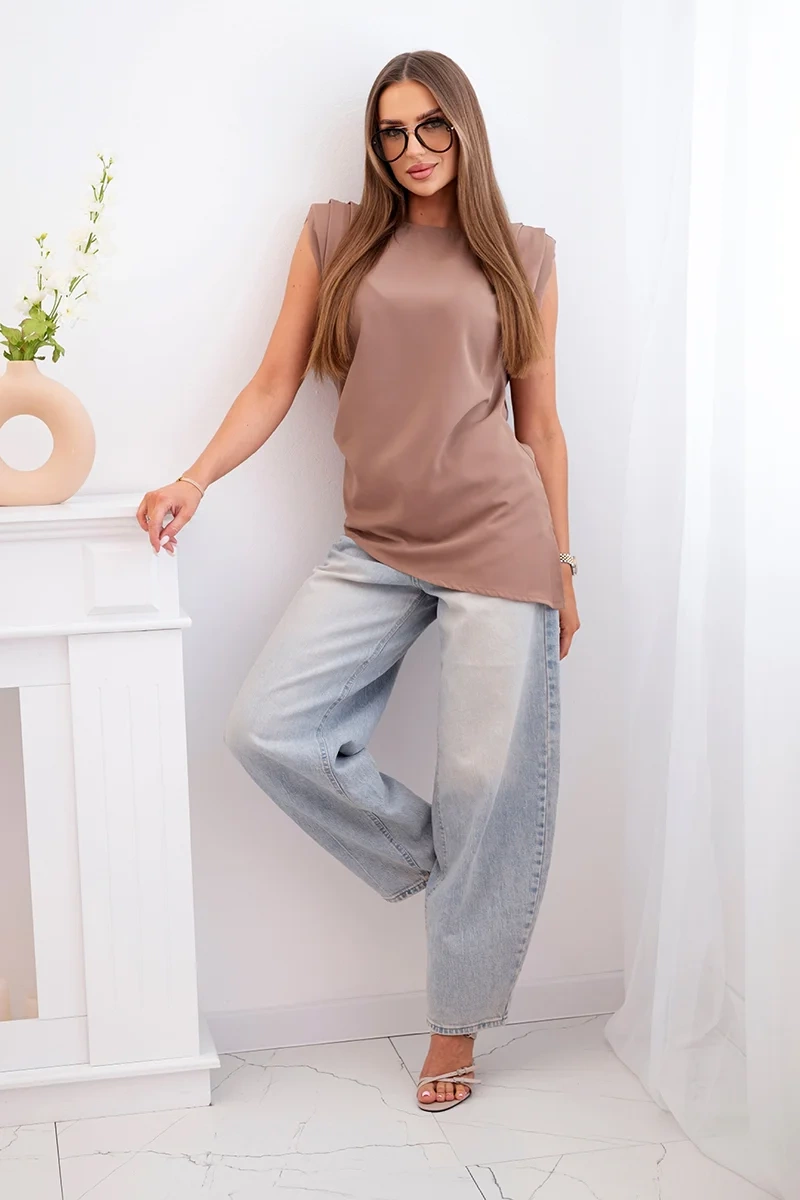 Elegantiška laisvo kirpimo moteriška palaidinė – puikus pasirinkimas moterims, vertinančioms stilių ir komfortą. Modelis išsiskiria subtiliomis klostėmis ant peties ir asimetriniu kirpimu, suteikiančiu jam unikalumo. Lengvai krintanti medžiaga gražiai gula ant figūros, užtikrindama patogumą visą dieną.