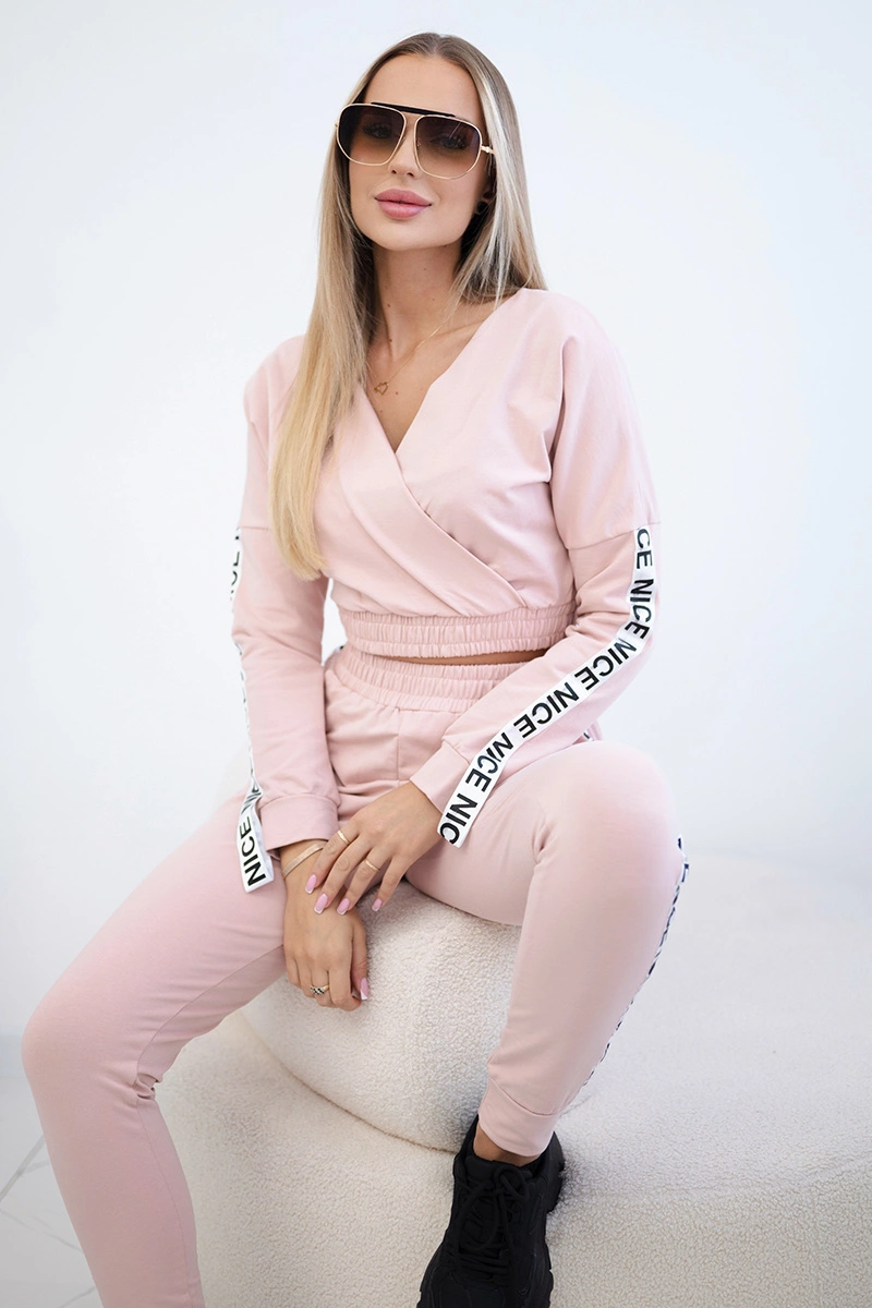 Komplektas su dekoratyvinėmis juostelėmis tamsiai pudros rožinės spalvos