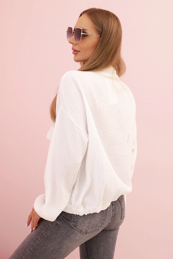 Moteriška marškiniai iš muslino su ilgomis rankovėmis balta