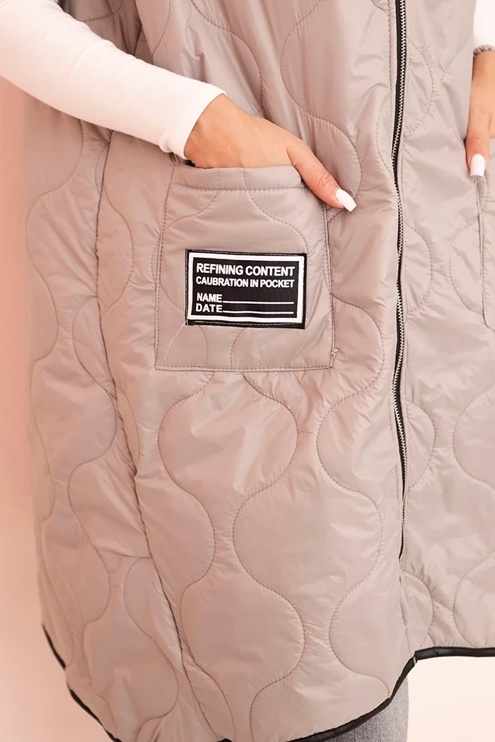 Moteriška Plus Size pūkuota liemenė yra ideali pasiūlymas vėsesniems dienoms. Dėl praktiško gobtuvo ir patogaus užtrauktuko ji tinka tiek miesto stiliams, tiek pasivaikščiojimams. Modelis turi madingą geometrinį pūkavimo raštą, kuris suteikia visumai charakterio, o ilgis, siekiantis už klubų, puikiai formuoja siluetą. Erdvios kišenės priekyje didina funkcionalumą, o dekoratyvinė aplikacija prideda sportinio stiliaus. Ši liemenė yra komforto ir stiliaus derinys – pagaminta iš lengvos, bet tvirtos medžiagos, idealiai tinka dėvėti visą pereinamąjį sezoną. Ji puikiai derinama su leggingais, džinsais ar sportine suknele, sukuriant madingus, sluoksniuotus stilius. Dydis yra universalaus pobūdžio ir tiks moterims, turinčioms L, XL, XXL dydžius.