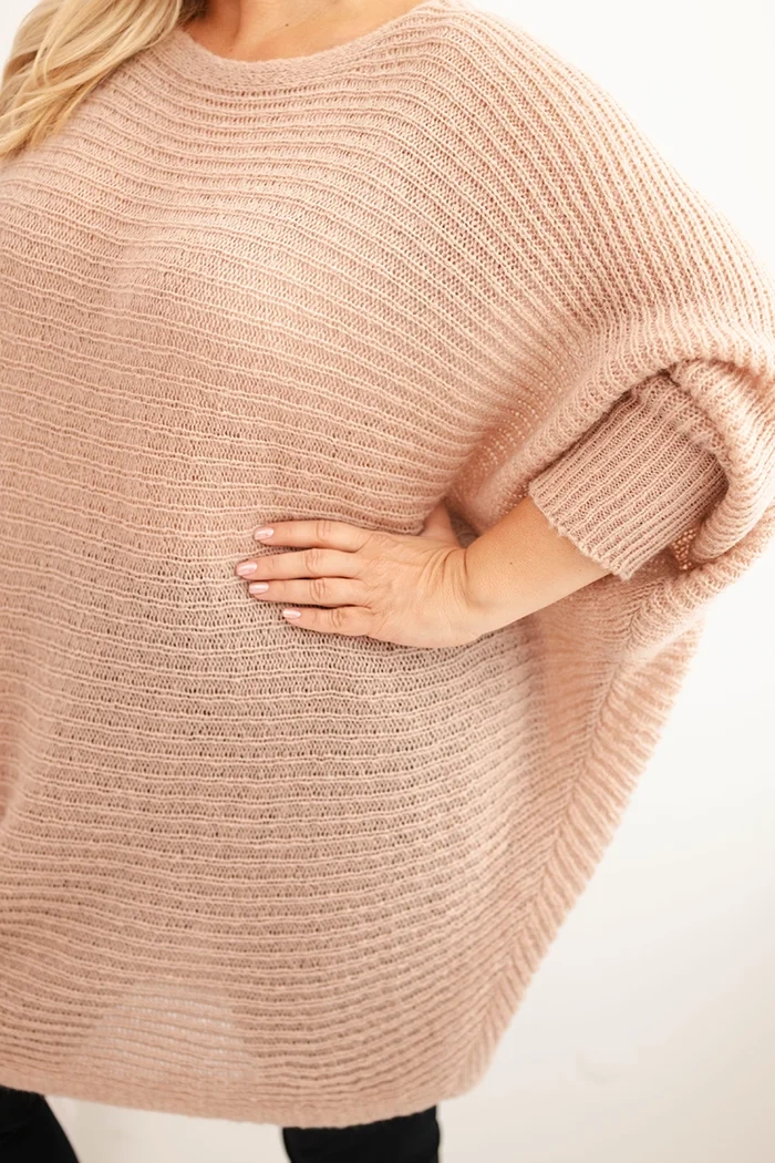 Stilingas moteriškas Plus Size megztinis su moheriu pončo forma yra puikus pasiūlymas moterims, vertinančioms patogumą, šilumą ir modernų išvaizdą. Laisvas, oversize fasonas puikiai krinta ant silueto, užtikrindamas komfortą ir judėjimo laisvę. Ilgis, dengiantis klubus, daro megztinį idealiai tinkamą tiek prie leginsų, tiek prie džinsų, sukuriant madingas ir patogias kasdienes stilius.