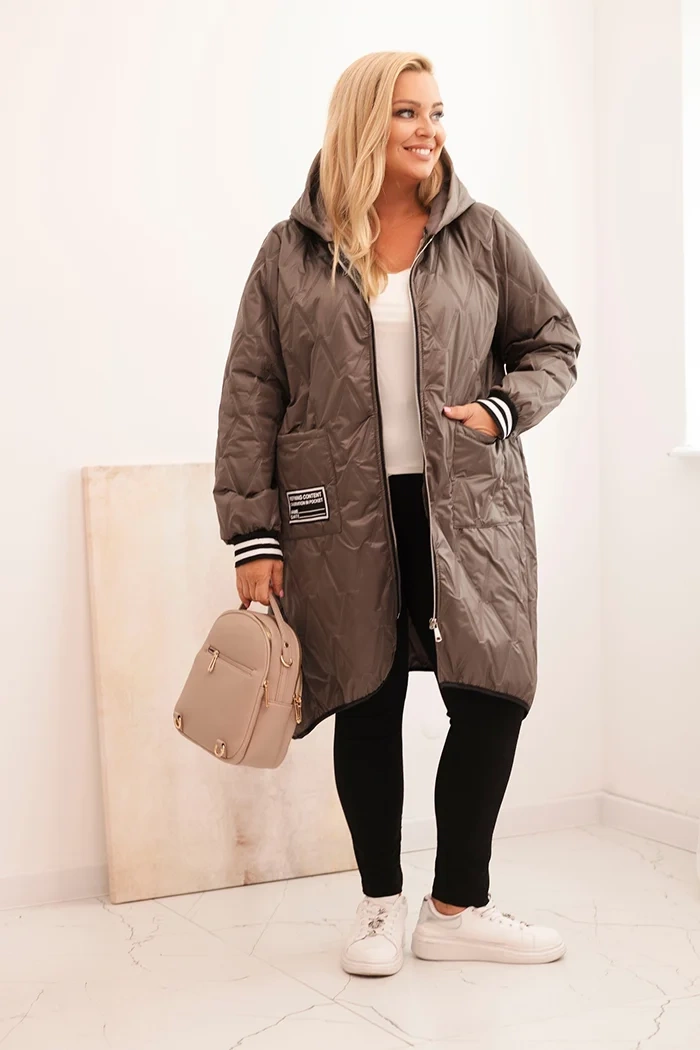 Moteriška plus size striukė su gobtuvu ir sportinėmis rankovėmis fango