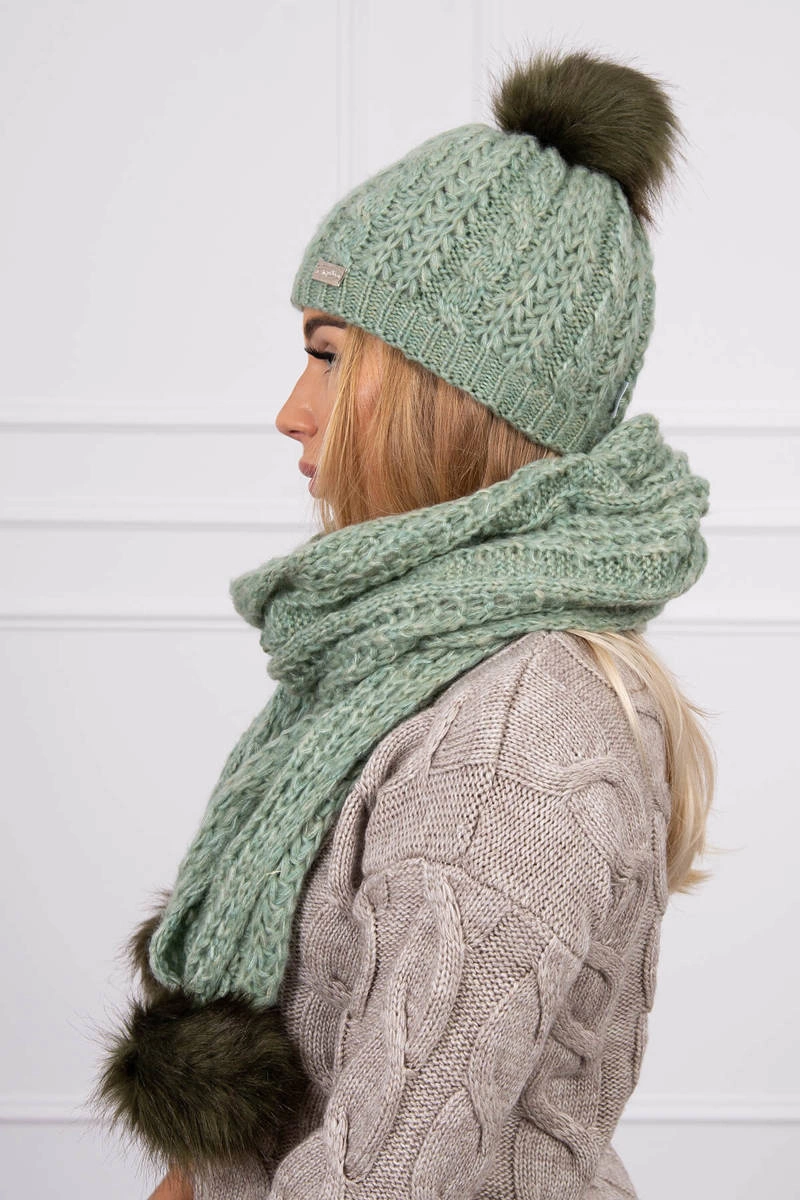 Siūlome jums šiltą rinkinį, kurį sudaro kepurė ir šalikas. Kepurė yra su vilnos pamušalu. Tiek kepurė, tiek šalikas užbaigiami elegantišku pomponu. Rinkinys išsiskiria patraukliu dizainu ir tvirtu apdirbimu. Dėl labai gražaus rašto rinkinys bus madingas ir praktiškas aksesuaras daugeliui sezonų. Pomponų spalva gali skirtis nuo parodytos nuotraukose. Skrybėlės ir šaliko dydis yra universalus.