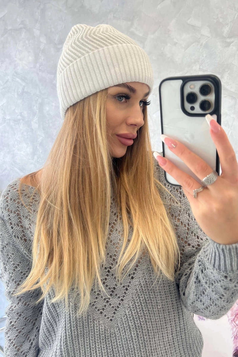 Pristatome jums ploną žieminę kepuraitę. Dangtelis išorėje turi išlenkimą. Dangtelis išsiskiria patraukliu dizainu ir tvirtu apdirbimu. Dėl klasikinio ir labai madingo dizaino kepurė bus madingas aksesuaras daugelį sezonų. Dangtelio dydis yra universalus.