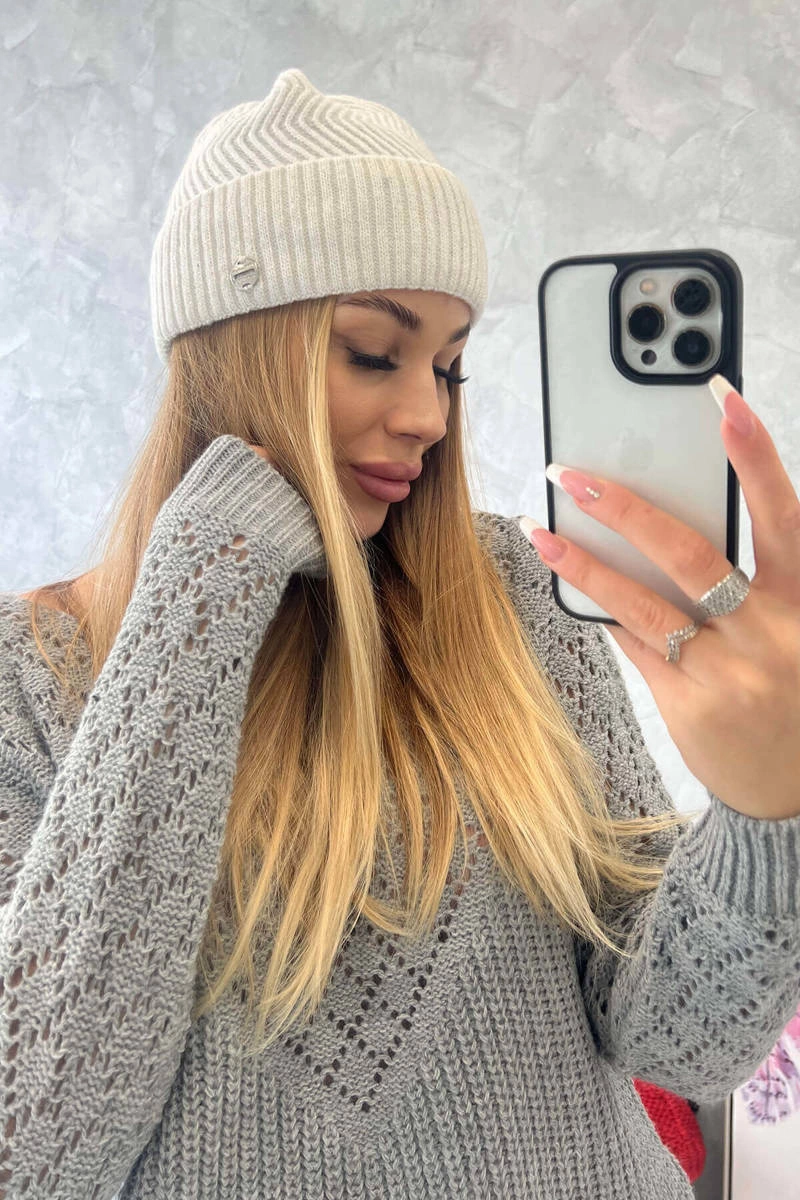 Pristatome jums ploną žieminę kepuraitę. Dangtelis išorėje turi išlenkimą. Dangtelis išsiskiria patraukliu dizainu ir tvirtu apdirbimu. Dėl klasikinio ir labai madingo dizaino kepurė bus madingas aksesuaras daugelį sezonų. Dangtelio dydis yra universalus.