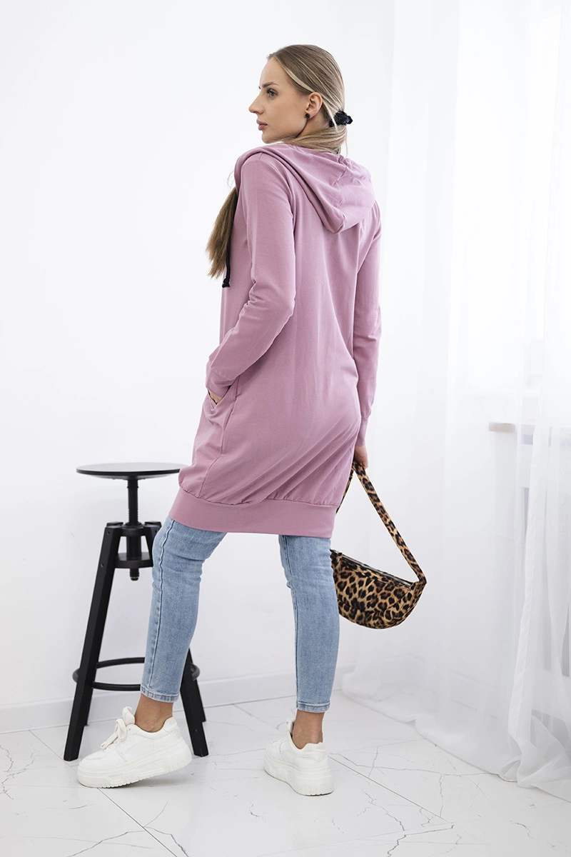 Pristatome jums patogų ilgą džemperį su gobtuvu. Marškinėliai užsegami užtrauktuku. Džemperis pagamintas iš aukštos kokybės medžiagos. Dydis yra universalus ir tiks moterims, nešiojančioms S, M arba L dydžio drabužius.