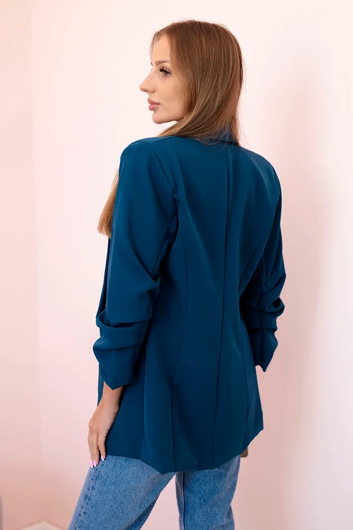 Švarkas su atvartais elegantiškas tamsus tealas