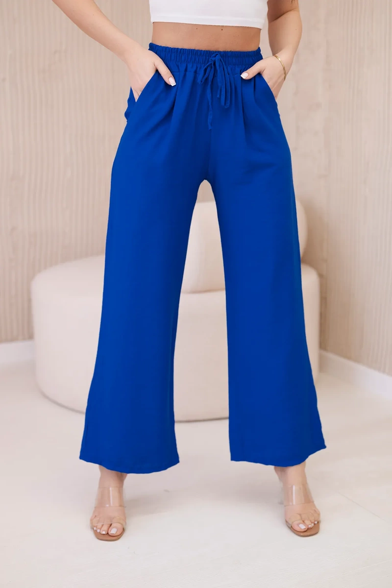 Plačios viskozės kelnės – tai unikali apranga, kurioje dera patogumas ir elegancija. Pagamintos iš lengvos ir erdvios viskozės medžiagos, šios kelnės ne tik garantuoja judėjimo laisvę, bet ir leidžia jaustis lengvais bei žvaliais visą dieną. Plati koja suteikia kelnėms būdingo, laisvo kirpimo, kuris yra ir madingas, ir patogus. Dėl šio elemento kelnės atrodo itin stilingai ir įspūdingai, pridedant originalumo bet kokiam stiliui. Dėl universalaus plačių kelnių dizaino jos puikiai tinka įvairioms progoms ir stiliams. Juos galite dėvėti tiek prie kasdienės, kasdienės aprangos, tiek prie elegantiškesnių komplektų verslo susitikimams ar vakarinėms išvykoms. Plačios viskozės kelnės yra puikus pasirinkimas moterims, kurios vertina komfortą ir stilių. Dėl universalaus dizaino ir kokybiško darbo šios kelnės yra nepakeičiama garderobo detalė, kuri puikiai papildys bet kurią drabužių kolekciją. Dydis universalus ir tiks S, M arba L dydį dėvinčioms moterims.