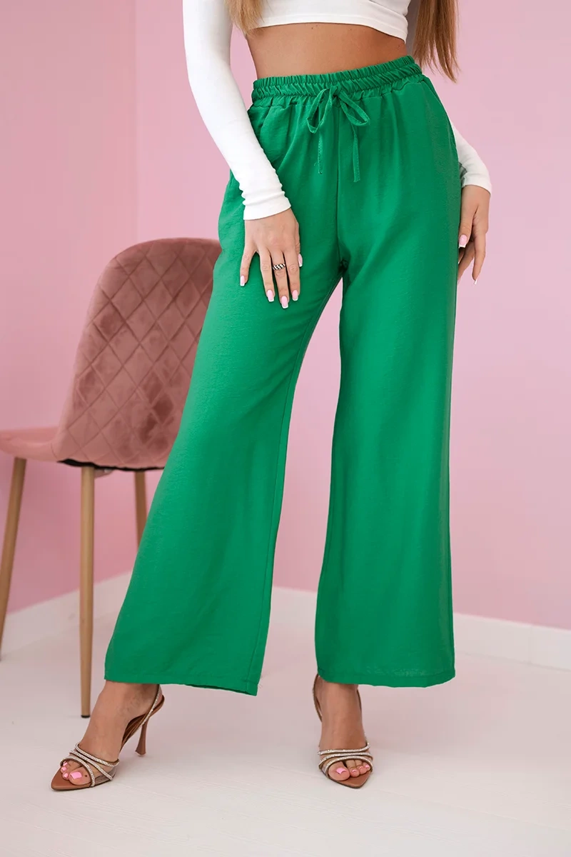 Viskozės kelnės plačioms kojoms šviesiai žalia